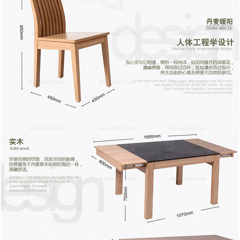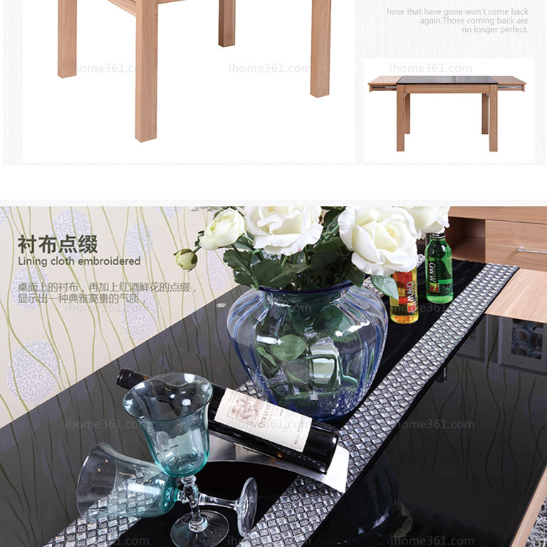 | 規(guī)格 | 餐桌:1070(1660)×800×750mm 餐椅:450*450*850mm 酒柜:800×400×2000mm |
