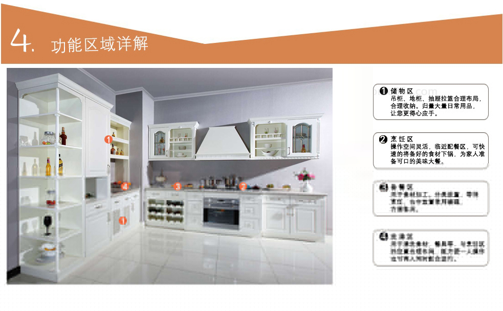 映入眼簾的無(wú)暇世界,走進(jìn)廚房,潔凈,一塵不染,剎那間放空你煩惱的 心情,與白色融為一體,最后呈現(xiàn)出你色彩斑斕的美味佳肴。